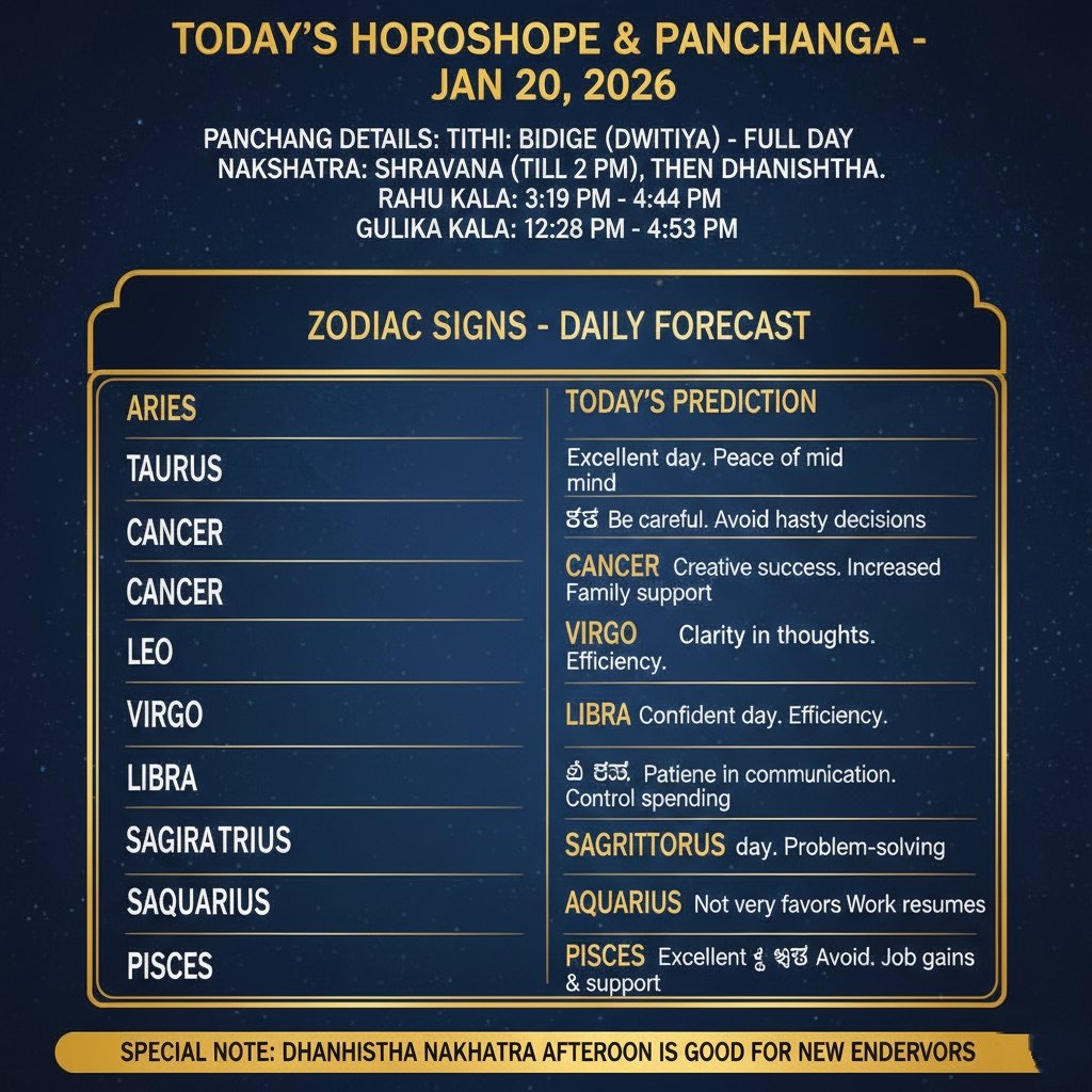 Read moreಇಂದಿನ ದ್ವಾದಶ ರಾಶಿಗಳ ಭವಿಷ್ಯ ಮತ್ತು ಪಂಚಾಂಗ
