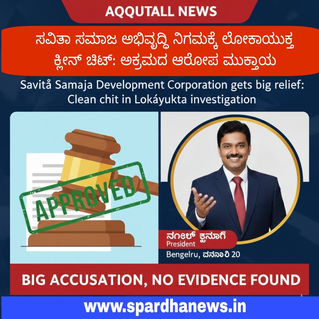 Read moreಸವಿತಾ ಸಮಾಜ ಅಭಿವೃದ್ಧಿ ನಿಗಮಕ್ಕೆ ಲೋಕಾಯುಕ್ತ ಕ್ಲೀನ್ ಚಿಟ್: ಅಕ್ರಮದ ಆರೋಪ ಮುಕ್ತಾಯ