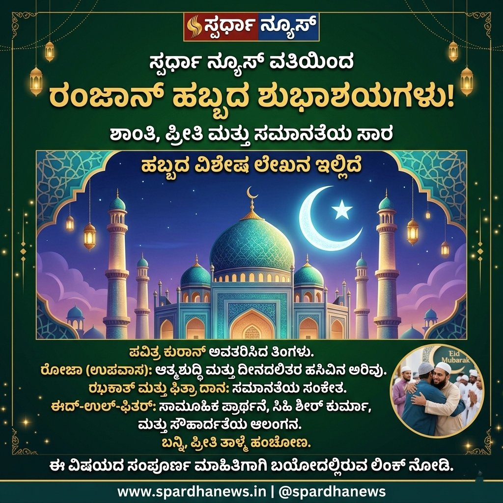 ಪವಿತ್ರ ರಂಜಾನ್ ಮಾಸವು ಕೇವಲ ಉಪವಾಸದ ದಿನಗಳಲ್ಲ, ಇದು ಆತ್ಮಶುದ್ಧಿ, ಶಿಸ್ತು ಮತ್ತು ದಯೆಯ ಸಂಕೇತ. ಇಸ್ಲಾಂ ಧರ್ಮದ ಪವಿತ್ರ ಗ್ರಂಥ ‘ಕುರಾನ್’ ಅವತರಿಸಿದ ಈ ತಿಂಗಳು, ವಿಶ್ವದಾದ್ಯಂತ ಮುಸ್ಲಿಂ ಬಾಂಧವರು ಅತ್ಯಂತ ಶ್ರದ್ಧಾಭಕ್ತಿಯಿಂದ ಆಚರಿಸುವ ಪವಿತ್ರ ಹಬ್ಬವಾಗಿದೆ.