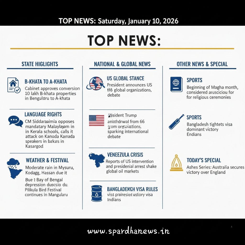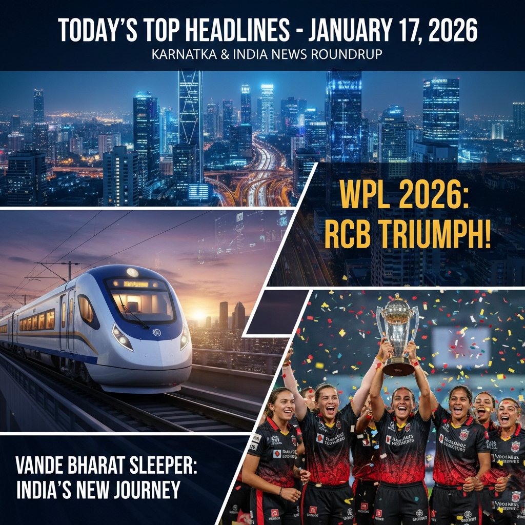 ಇಂದು ಜನವರಿ 17, 2026, ಶನಿವಾರ. ಕರ್ನಾಟಕ ಮತ್ತು ದೇಶದ ಪ್ರಮುಖ ಸುದ್ದಿಗಳ ಮುಖ್ಯಾಂಶಗಳು ಇಲ್ಲಿವೆ: 📍 ಕರ್ನಾಟಕ ಪ್ರಮುಖ ಸುದ್ದಿಗಳು 🇮🇳 ರಾಷ್ಟ್ರೀಯ ಸುದ್ದಿಗಳು 🏏 ಕ್ರೀಡೆ ಮತ್ತು ಇತರೆ